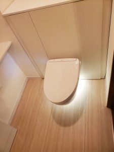 今回はマンションですの事例ですが、ハイドロセラを使用したトイレの事例は確か初夏頃にご紹介したかと思いますが、そのときは戸建てでした。(トイレ本体もメーカーが違ったような…)